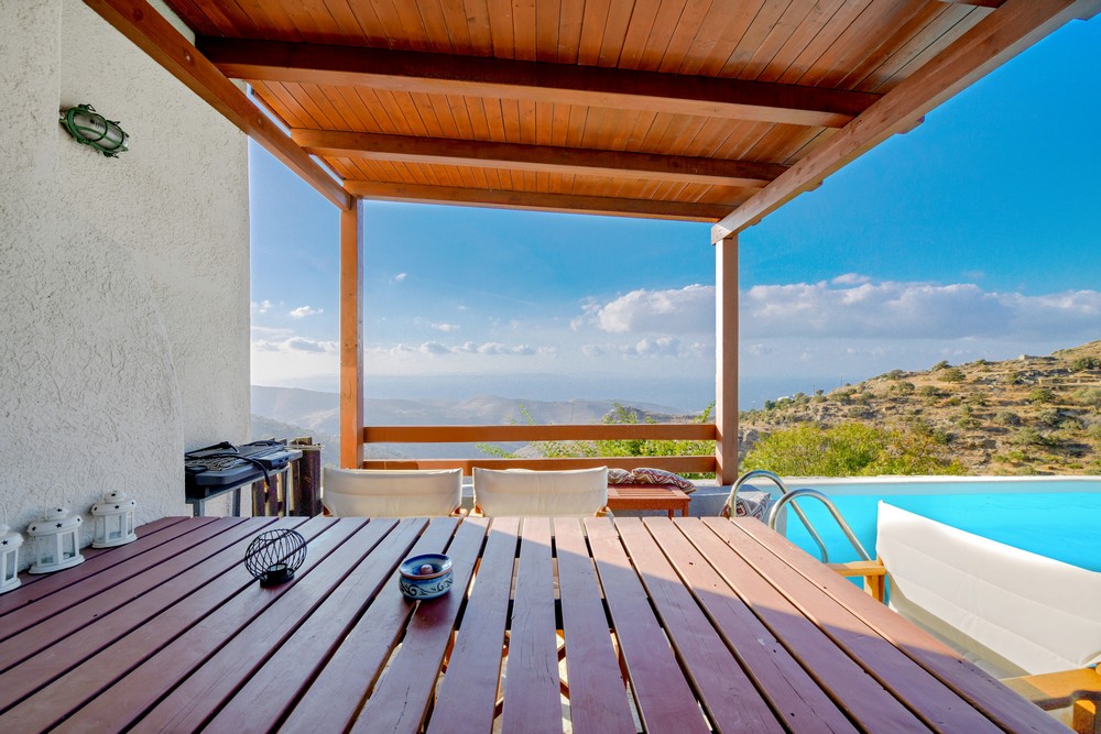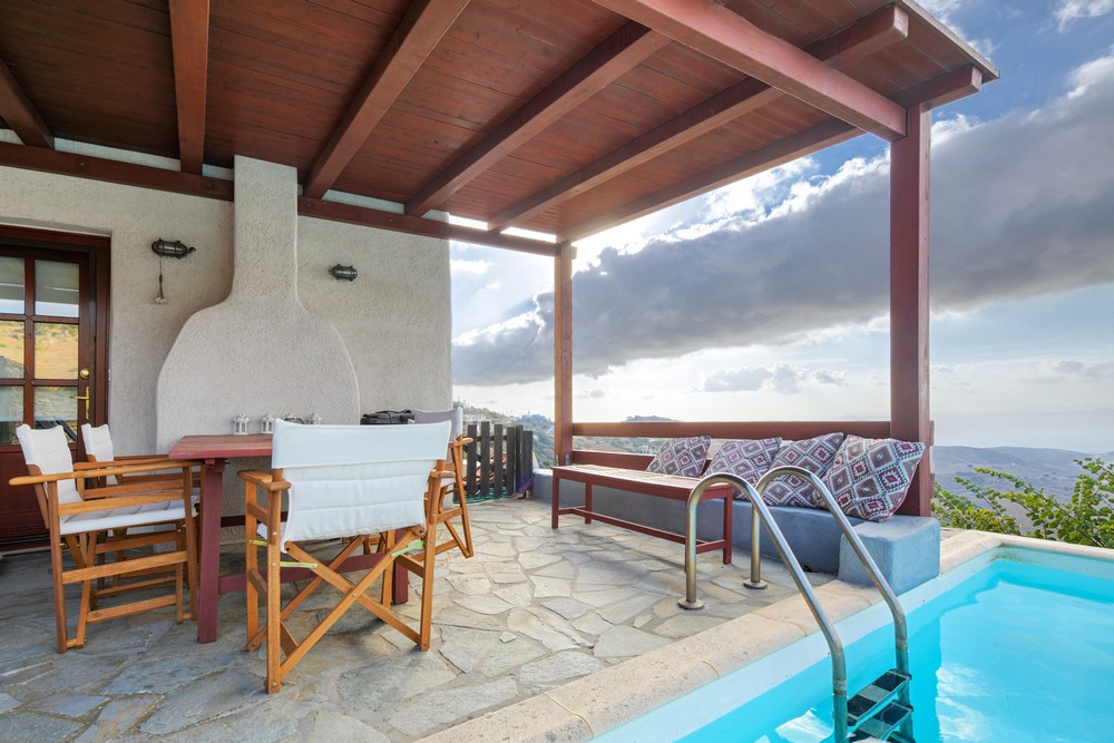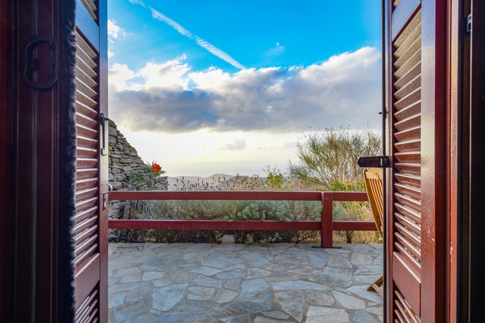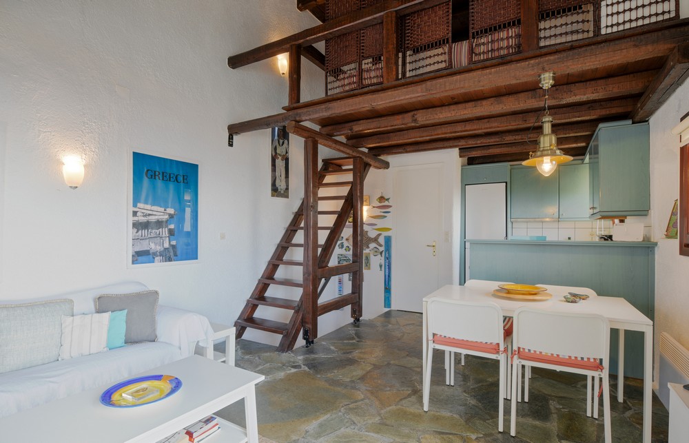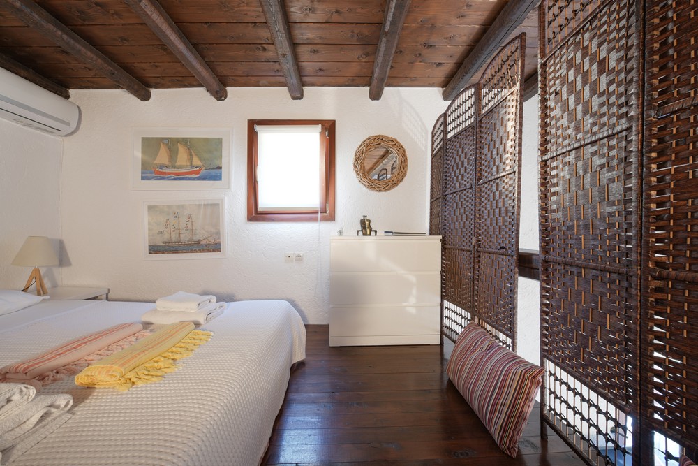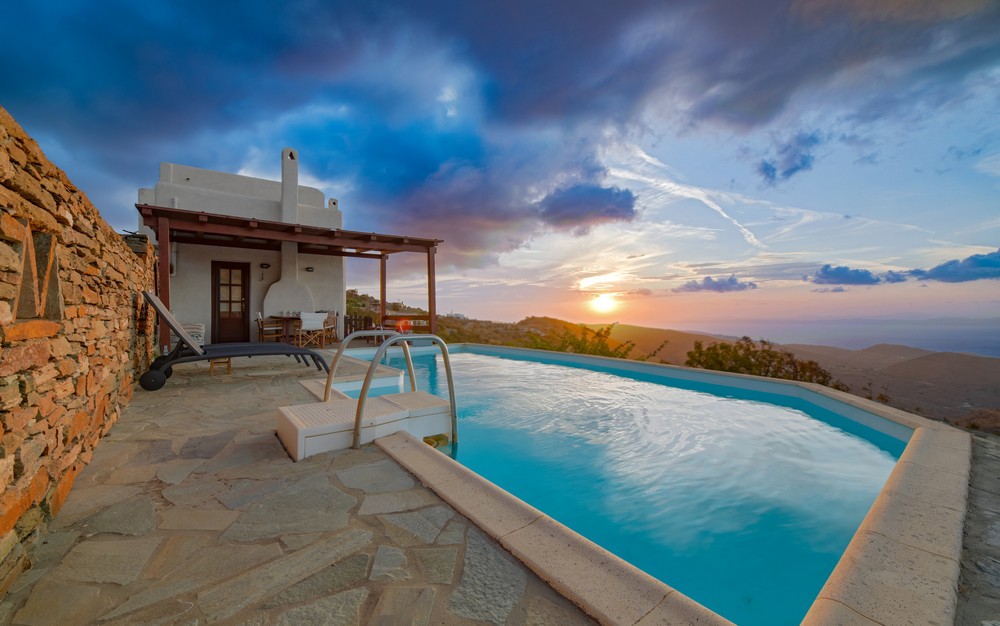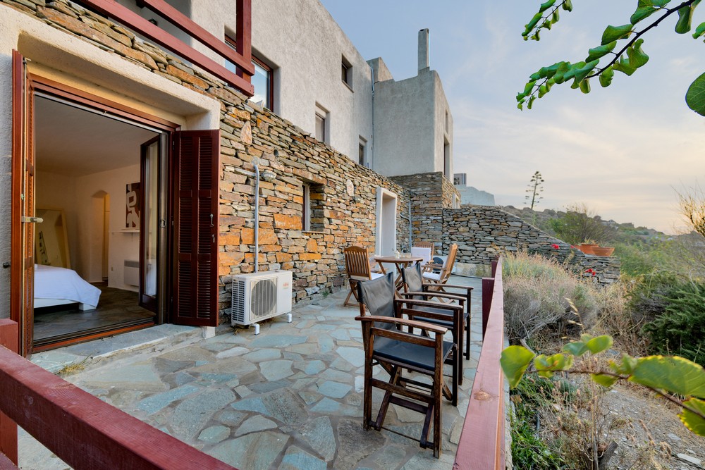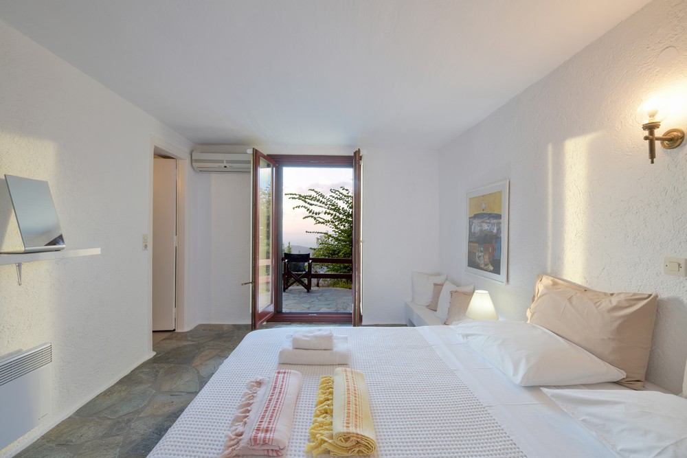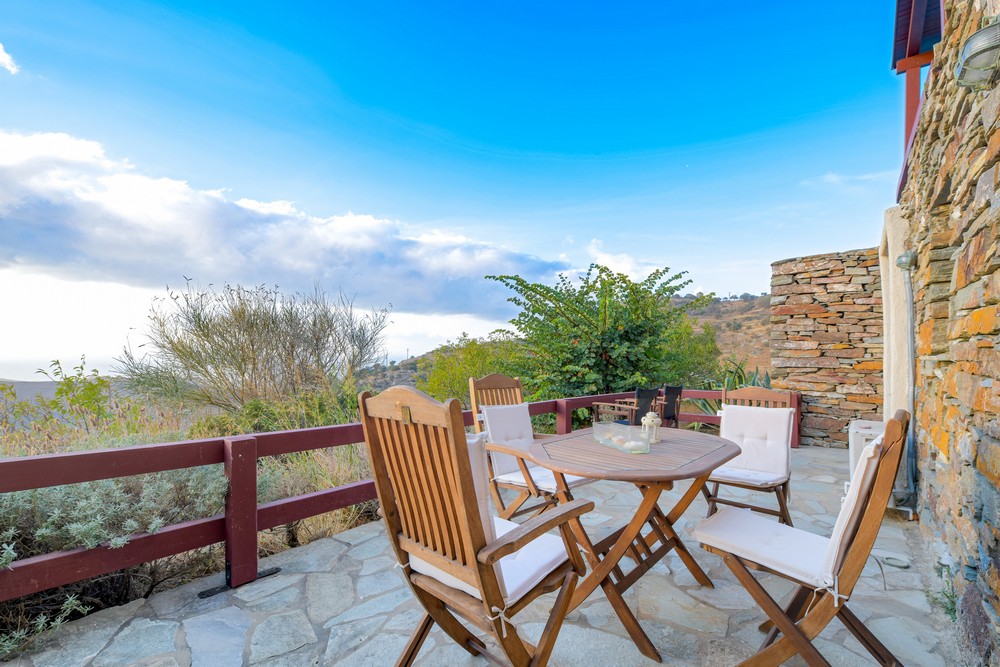 The house is 120 sq meters on a 1,000s meters plot of land near Chora (Ioulitha). Outside there is a swimming pool and terrace from where one has a breathtaking view of the surrounding area and the sea. Near the swimming pool there is a shaded dining/seating area.The ground floor of the house has a living room with fireplace and large windows that again give one a fantastic sea view. Near dining area there is a fully equipped kitchen and a w.c.  Near the kitchen there are stairs leading to an open-plan area that overlooks the living room, which can be used as the third bedroom. The floor below the ground level has two bedrooms and two bathrooms., both bedrooms lead onto a large patio which offers great views of the surrounding area and the sea.