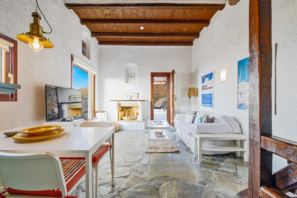 This particular house is 10  minutes from the harbor of Kea, called Korissia and 3 minutes from the main town/village (chora) called Ioulitha. Near Ioulitha is a large super market and in Ioulitha itself there are restaurants, cafes and boutiques. Fifteen to 20 minutes from the house are the sandy beaches of Spathi, Xyla, Pisses, Koundouraki, Otzia, Gialiskari and many more. The picturesque Marina of Vourkari, well known to the yachting crown is 15 minutes from the house and offers some very good fish restaurants, cafes, bars and a couple of boutiques.